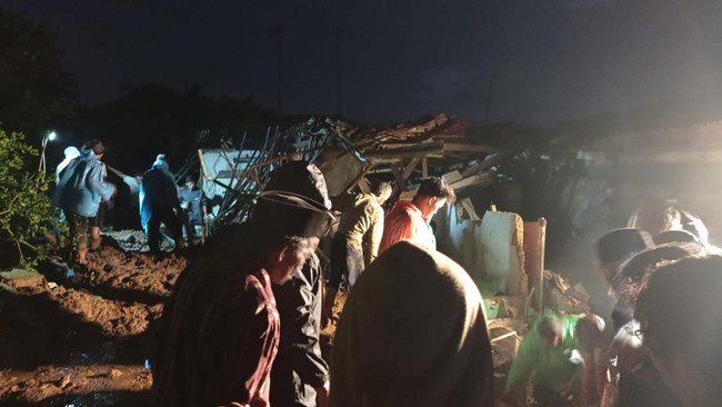 Dalam foto yang diterima detikcom, terlihat evakuasi masih berjalan di tengah gelapnya malam. Sisa reruntuhan masih nampak di lokasi kejadian.