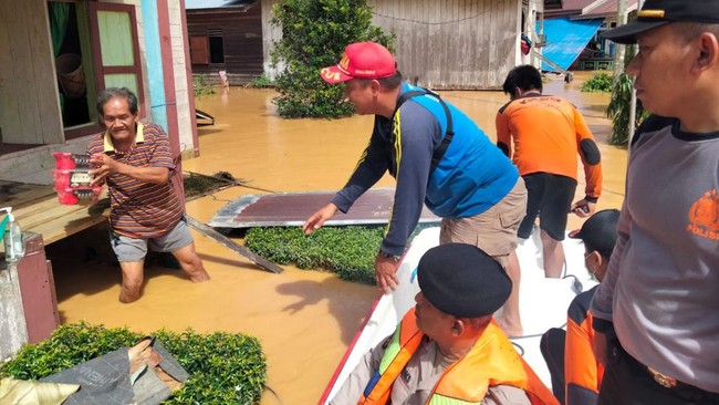 "Tim dibantu TNI/Polri beserta Dinas Sosial dan para relawan telah mendistribusikan bantuan logistik kepada korban terdampak. Kondisi terkini di lokasi kejadian, debit air masih tinggi dan cenderung naik, namun warga masih enggan mengungsi dan bertahan di rumah masing-masing," ujarnya.