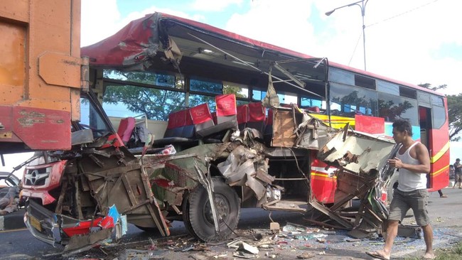 Bus kemudian menabrak bagian belakang dan samping kanan truk. Kabin bus samping kiri mengalami kerusakan dan penumpang mengalami luka-luka akibat kecelakaan ini. Sementara itu, tidak ada korban jiwa dalam kecelakaan.