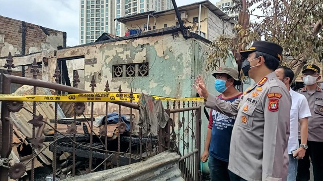 Kapolres Metro Jakarta Selatan Kombes Budhi Herdi Susianto menyambangi lokasi kebakaran yang berada di Kebayoran Lama, Jakarta Selatan. Ternyata, lokasi kebakaran tersebut merupakan Asrama Polisi Kebayoran Lama.