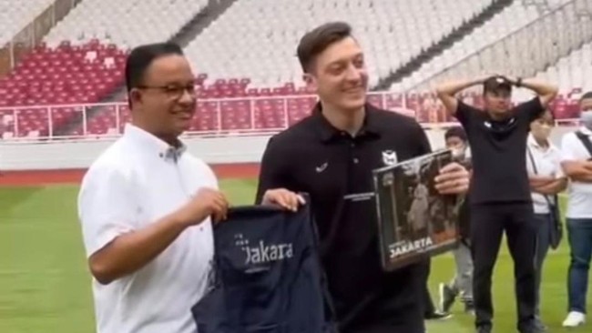 Dalam video lainnya, Anies terlihat memberikan kata sambutan di tengah-tengah lapangan bola GBK. Dalam sambutannya, Anies merasa senang atas kunjungan Ozil ke Ibu Kota.