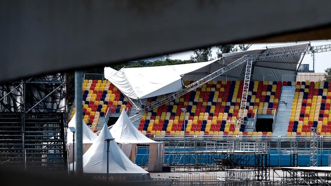 Atap tribun penonton sirkuit Formula E di Ancol roboh akibat diterjang angin kencang. Penyelenggara memastikan perbaikan atap rampung pada Kamis pekan depan atau H-2 balapan.