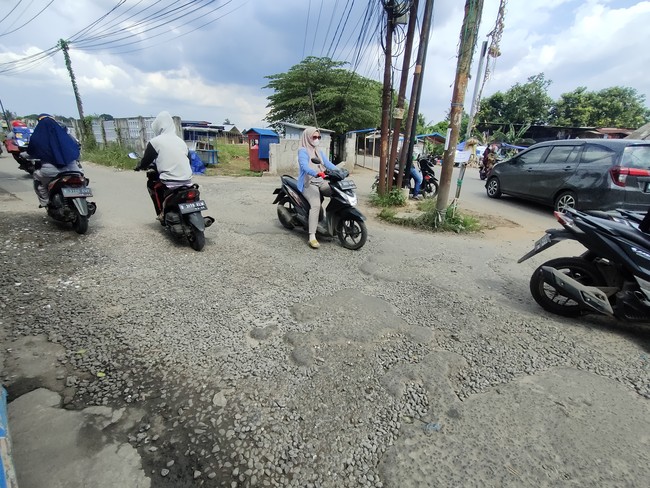 Salah satu pengendara motor, Nurdi (47), mengatakan kerikil yang berhamburan di jalan membuat banyak pengendara motor terpeleset. Lubang yang dalam juga membuat pengendara kaget hingga kerap menyebabkan suara benturan.
