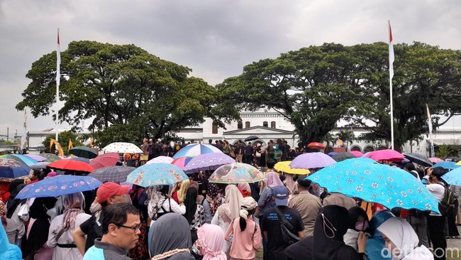 Setiba di Alun-alun Kota Bogor, Wali Kota Bima Arya Sugiarto, pimpinan Forkopimda, serta pejabat Kota Bogor lainnya langsung berkumpul di aula terbuka di tengah Alun-alun Kota Bogor.
