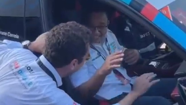 "Saya di sini bersama Bruno kita akan menggunakan kendaraan safety car untuk keliling trek kecepatannya nanti sekitar 200 km per jam," kata Anies.