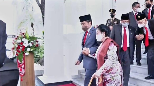 Pertemuan Jokowi dan Megawati itu terjadi sebelum pelantikan Dewan Pengarah, Kepala, dan Wakil Kepala BPIP, Selasa (7/6). Jokowi dan Megawati tampak berbincang di ruang tunggu Istana Negara.