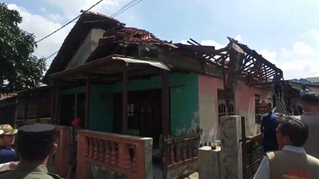 Plafon rumah tersebut ambruk di ruang tengah dan ruang tamu. Kerugian ditaksir mencapai Rp 30 juta.