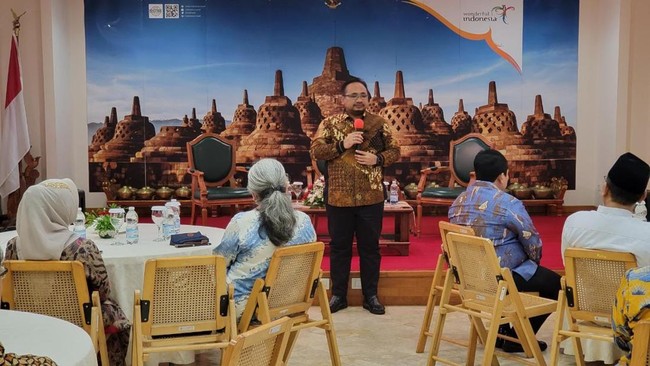 Acara pertemuan ini diselenggarakan oleh KBRI Vatikan, Selasa (7/6/2022), pukul 19.30 waktu setempat. Pertemuan ini dibuka Duta Besar Indonesia untuk Vatikan Laurentius Amrih Jinangkung. Hadir juga dalam pertemuan ini, Ketua Umum PBNU KH Yahya Cholil Staquf.