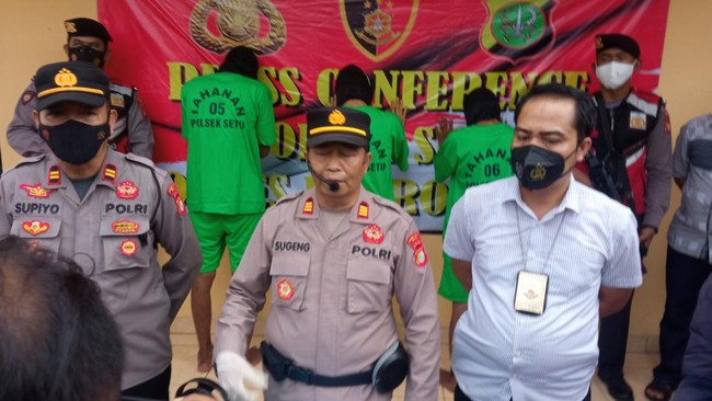 "Pelakunya ada empat orang, alhamdulillah tiga orang telah berhasil kita amankan, kita tangkap. Kebetulan Saudara SH ini kategorinya masih bawah umur. Atas nama A ini juga kategori bawah umur jadi yang dewasa ini adalah MR alias Ardan," ujar Kapolsek Setu, AKP Sugeng Haryanto, dalam jumpa pers pada Rabu (8/6/2022).