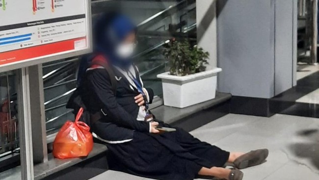 Foto ibu hamil yang berselonjor itu diunggah oleh akun Twitter komunitas pengguna KRL Jalur Bekasi, @jalurbekasi. Peristiwa itu disebut terjadi Rabu (8/6) malam. Dia meminta pihak terkait memperbaiki kerusakan tersebut.