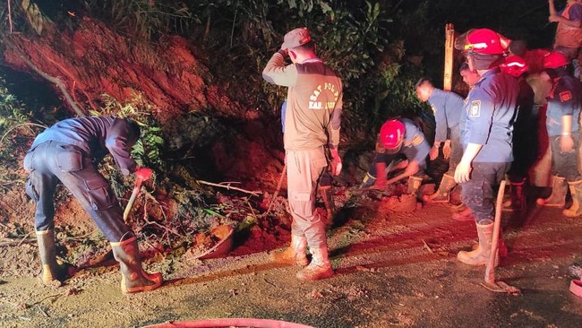 Penanganan dilakukan dengan cara menyingkirkan longsoran tanah di sekitar lokasi kejadian.
