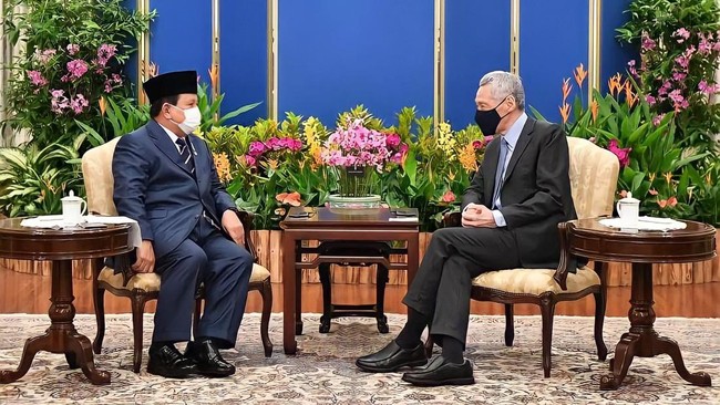 Menteri Pertahanan RI Prabowo Subianto bertemu dengan Perdana Menteri Singapura Lee Hsien Loong, pada Sabtu (11/6/2022) kemarin. Prabowo menyampaikan apresiasinya kepada PM Lee atas kontribusinya mendorong peningkatan kerja sama pertahanan kedua negara. Keduanya membicarakan hal-hal seputar keamanan hingga kontraterorisme