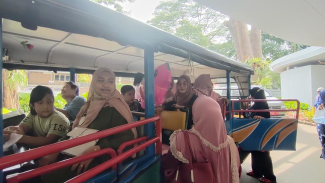 Pantauan detikcom di lokasi, Minggu (12/6/2022), sekitar pukul 10.00 WIB, terlihat sekelompok warga datang menggunakan odong-odong. Di dalam kendaraan tersebut terdiri atas orang tua dan juga anaknya. Mereka langsung menyebar saat tiba di pintu masuk.