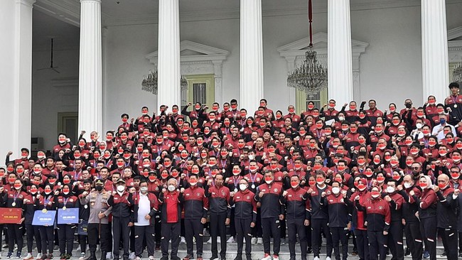 Presiden Joko Widodo (Jokowi) memberikan bonus kepada atlet Indonesia peraih medali SEA Games ke-31 di Vietnam. Jokowi mengapresiasi prestasi para atlet.