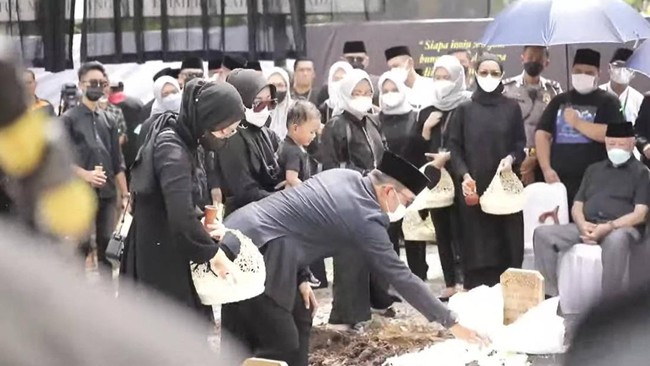 "Atas nama keluarga almarhum Emmmeril Kahn Mumtadz, saya yang pertama menghaturkan terima kasih kepada Bapak Presiden Joko Widodo, kepada Bapak Wakil Presiden Ma'ruf Amin, kepada para menteri Kabinet Indonesia Maju," ujar Ridwan Kamil usai pemakaman Eril di Cimaung, Bandung, Senin (13/6/2022).