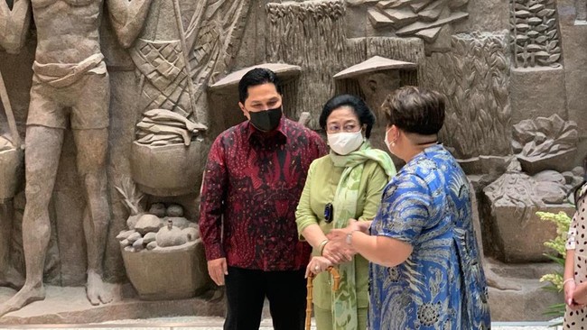 Setelah itu, keduanya lalu turun ke lantai 1 gedung Sarinah untuk makan siang. Hingga kini belum ada keterangan dari Megawati maupun Erick Thohir ke awak media.