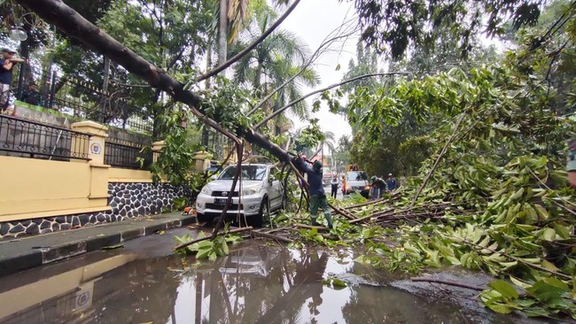 Insiden itu terjadi sekitar pukul 17.30 WIB. Petugas pemadam kebakaran terlihat mengevakuasi pohon tersebut dengan memotongnya menjadi bagian yang lebih kecil.