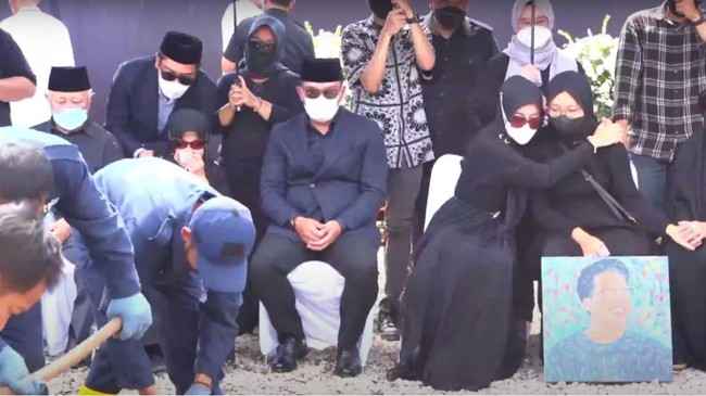 Sementara itu, pamannya Elpi Nazmuzzaman tampak berada di depan peti jenazah sembari membawa foto Eril. Zara duduk di samping ibundanya, Atalia Praratya, saat jenazah Eril dimakamkan.