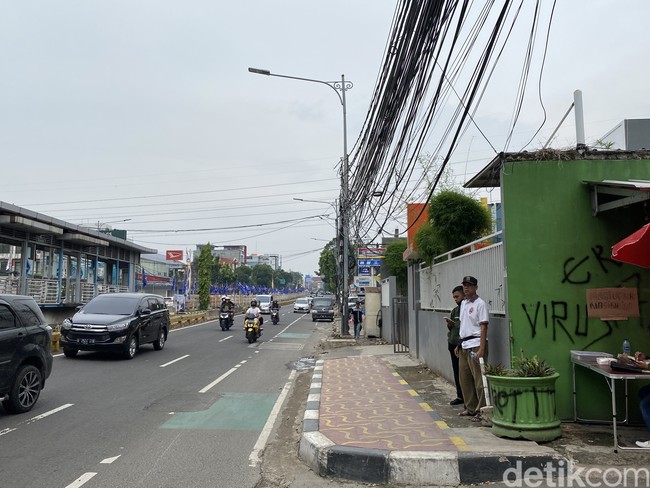 Pantauan detikcom di depan kantor Imigrasi Jakarta Selatan, Selasa (14/6/2022) siang ini, tampak kabel-kabel masih centang perenang. Ada pula kabel-kabel yang menjuntai, banyak lagi yang berbelit.