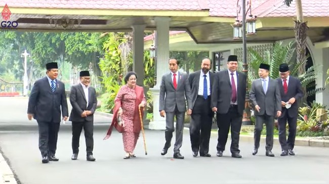 Dalam tayangan langsung di YouTube Sekretariat Presiden, Rabu (15/6/2022), Jokowi dan tujuh ketum parpol berbarengan keluar dari sebuah gedung. Tujuh ketum parpol tersebut antara lain Ketum PDIP Megawati Soekarnoputri, Ketum PKB MUhaimin Iskandar, Ketum PPP Suharso Monoarfa, Ketum PAN Zulkifli Hasan, Ketum Gerindra Prabowo Subianto, dan Ketum NasDem Surya Paloh.