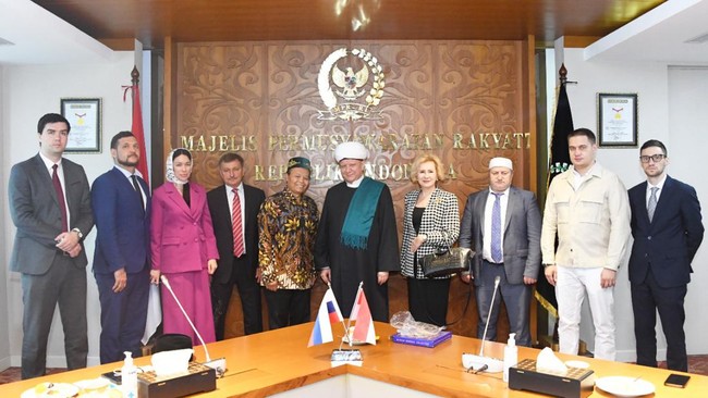 Pada pertemuan yang berlangsung di Ruang Rapat Pimpinan MPR, Gedung Nusantara III lantai 9 Kompleks Parlemen Senayan Jakarta itu, Albir Krganov mengingatkan kembali hubungan erat antara Indonesia dan Rusia yang sudah berlangsung sejak lama, bahkan sejak Rusia masih menyandang nama Uni Soviet. Ia bercerita tentang bagaimana Presiden Indonesia pertama Ir. Soekarno sempat mengunjungi Uni Soviet dan melaksanakan salat di Masjid Saint Petersburg, salah satu rumah ibadah umat Islam terbesar dan terindah yang ada di Rusia.