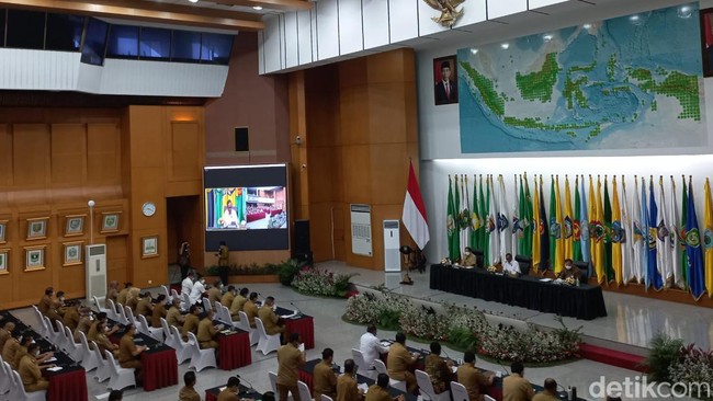 Menteri Dalam Negeri Tito Karnavian menggelar rapat koordinasi dengan penjabat (pj) kepala daerah di kantornya. Rapat sesi pertama dihadiri oleh Menko Polhukam Mahfud Md hingga Ketua KPK Firli Bahuri. Mahfud yang hadir menyinggung kemunculan gerakan khilafah.