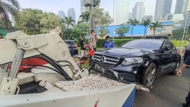 Taman median jalan rusak akibat mobil tersebut. Mobil derek kemudian membawa Mercy itu ke Markas Polda Metro Jaya.