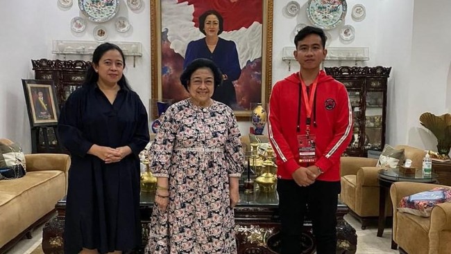 "Kemarin sore saya mendampingi Ibu Megawati menerima Mas Gibran Rakabuming Raka, Walikota Solo, yang bersilaturahmi ke rumah Ibu Mega setelah Mas Gibran selesai mengikuti acara penutupan Sekolah Kader Kepala Daerah PDI Perjuangan 2022," tulis Puan di keterangan fotonya hari ini.
