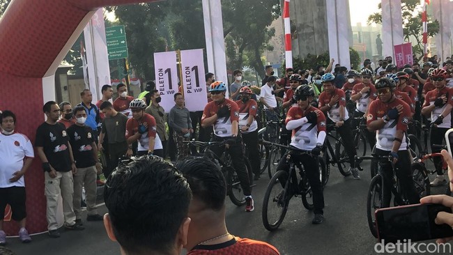 Listyo beserta pejabat TNI itu mulai gowes dari pukul 7.10 WIB di depan Lapangan Bhayangkara. Keseluruhannya akan gowes melewati Jl Jenderal Sudirman dan kembali ke Lapangan Bhayangkara.