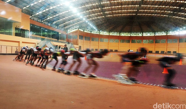 Faisal Norman menjelaskan para atlet Jakarta sedang bersiap menyongsong kompetisi Pekan Olahraga Nasional (PON) 2024. Sayangnya, tetesan air dari atap yang bocor jatuh tepat di trek sepatu roda.