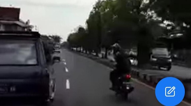 Mobil tersebut justru menambah kecepatan di depan ambulans yang tengah melaju. Kejadian itu membuat seorang pengendara sepeda motor mendekati mobil tersebut.