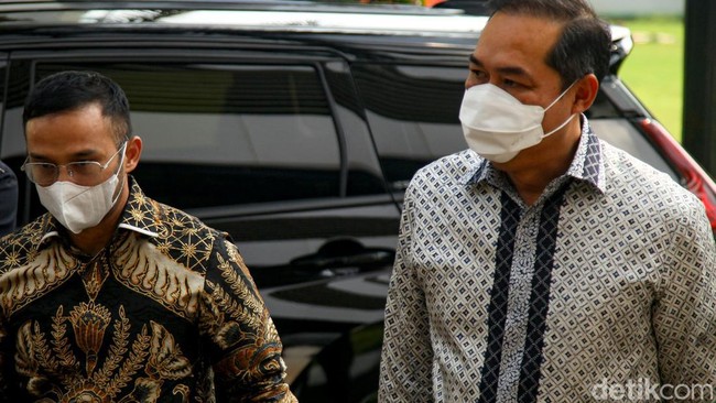 Lutfi tiba di Gedung Bundar Jampidsus Kejagung, Jalan Sultan Hasanuddin, Kebayoran Baru, Jakarta Selatan, pukul 09.10 WIB, Rabu (22/6/2022). M Lutfi datang mengenakan batik dan menenteng tas hitam.