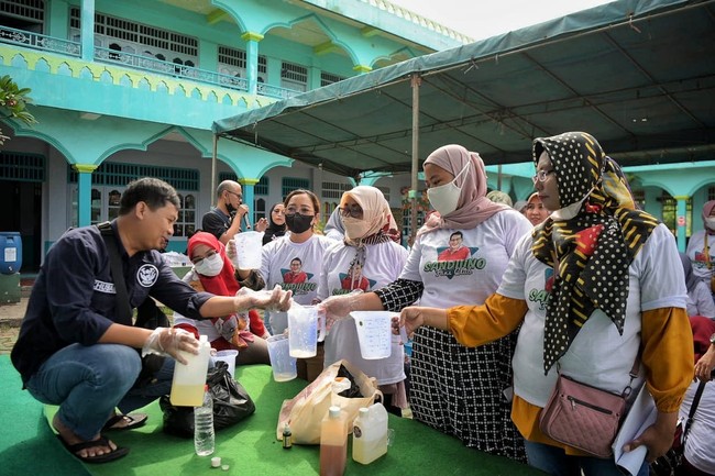 Sejumlah relawan yang tergabung dalam Sandi Uno Fans Club Jakarta Timur menggelar pelatihan pembuatan sabun cuci bagi emak-emak. Kegiatan tersebut dilakukan bertujuan untuk meningkatkan kemampuan para ibu dan membantu membuka lapangan pekerjaan.