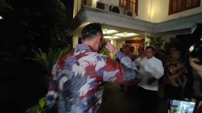 "Silaturahmi, nanti ya, masuk dulu ke dalam, kita ingin diskusi dulu," ujar AHY. Keduanya kemudian masuk ke dalam rumah Prabowo.