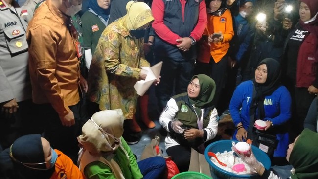 Pantauan detikcom di lokasi, Risma terlihat berdialog dengan warga. Dia juga mengecek kondisi dapur umum.