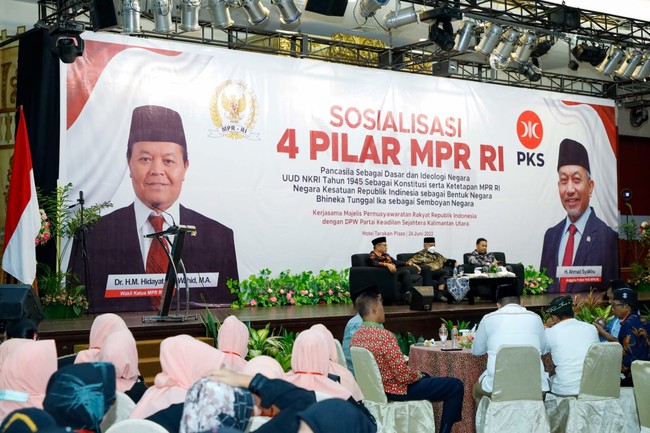 Wakil Ketua MPR Hidayat Nur Wahid mengajak seluruh lapisan masyarakat di Kalimantan Utara untuk terus mencintai Tanah Air dan bangsa Indonesia. Hal tersebut diungkapkan olehnya saat menjadi pembicara di Sosialisasi Empat Pilar yang diselenggarakan secara hybrid di Kalimantan Utara, Jumat (24/6/2022).