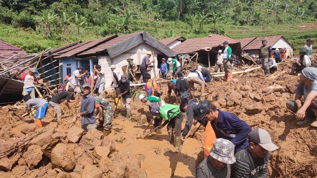 "Tadi posisi korban telentang dan masih tertimbun sebagian tanah dan bantuan. Lalu kita urai pelan-pelan. Alhamdulillah sekarang sudah diangkat," kata Kasiops dan Siaga Basarnas Jakarta, Agung Priambodo kepada wartawan di Desa Cibunian, Sabtu (25/6).