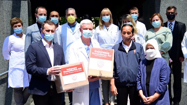 Ibu Negara Iriana Joko Widodo menyerahkan bantuan kemanusiaan dari Indonesia untuk rakyat Ukraina. Bantuan kemanusiaan berupa obat-obatan itu diberikan kepada Pusat Ilmiah dan Bedah Endokrin, Transplantasi Organ dan Jaringan Endokrin Ukraina di Kyiv, Ukraina.