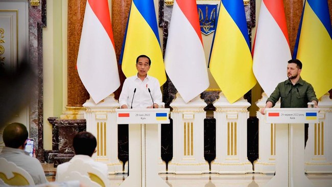 "Saya sampaikan ke Presiden Zelensky bahwa kunjungan ini saya lakukan sebagai manifestasi kepedulian Indonesia terhadap situasi di Ukraina," ujar Presiden Jokowi saat menyampaikan pernyataan pers bersama Presiden Zelensky selepas pertemuan seperti dalam keterangan dari Biro Pers, Media dan Informasi Sekretariat Presiden, Rabu (29/6/2022).