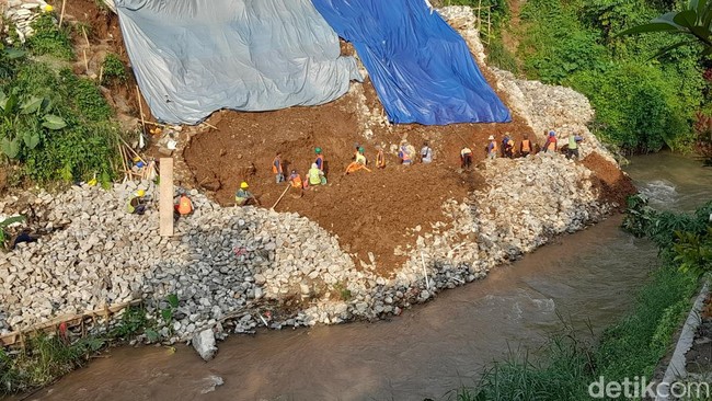 Saat ini, kata Yulianti, proses tahapan pembangunan tembok antilongsor sudah kembali dilaksanakan. Para pekerja saat masih proses pembersihan material longsor dan mempersiapkan pembuatan pondasi.
