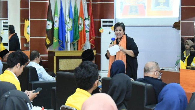 Selain itu, pada kesempatan tersebut Rerie juga mengajak para mahasiswa membaca pembukaan UUD 1945 secara bersamaan dan menyanyikan lagu Bendera dari Band Cokelat yang membakar semangat peserta kuliah umum.