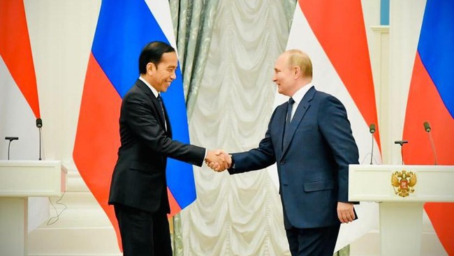 Presiden Joko Widodo (Jokowi) telah bertemu dengan Presiden Rusia Vladimir Putin di Istana Kremlin, Moskow. Jokowi menyebut telah menyampaikan pesan dari Presiden Ukraina Volodymyr Zelensky ke Putin.