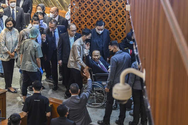 Sebelum ambruk, Muhidin sempat menyampaikan laporan Banggar terkait RAPBN tahun anggaran 2023, Kamis (30/6). Setelah membacakan laporan, Muhidin berjalan ke meja pimpinan DPR untuk menyerahkan dokumen.