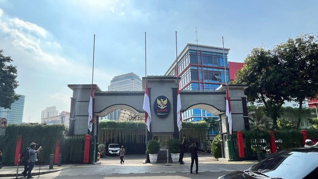 Setidaknya ada 4 bendera Merah Putih yang diturunkan setengah tiang di momen wafatnya Tjahjo Kumolo.