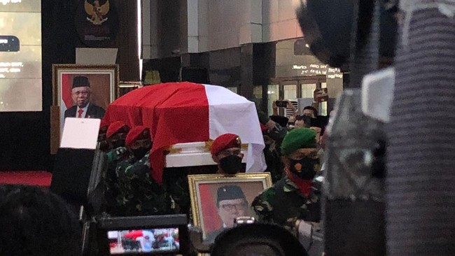 Prosesi salat jenazah dilakukan terbatas. Sejumlah pejabat negara mulai dari Wakil Presiden RI, menteri-menteri, hingga kepala daerah turut hadir dalam salat tersebut.
