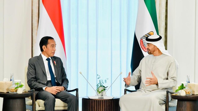Jokowi mengapresiasi MBZ atas hubungan persahabatan antara Indonesia dan UEA yang terus meningkat di tengah situasi penuh tantangan saat ini.