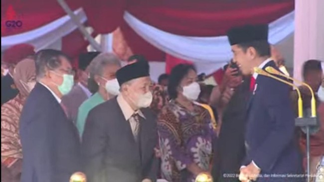 Upacara peringatan Hari Bhayangkara ke-76 dipusatkan di Akademi Kepolisian, Semarang, Jawa Tengah, seperti disiarkan akun YouTube Sekretariat Presiden, Selasa (5/7/2022). Selain Megawati, hadir juga Wakil Presiden ke-6 Try Sutrisno, Wakil Presiden ke-9 Hamzah Haz hingga Wakil Presiden ke-10 dan ke-12 Jusuf Kalla.