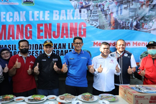 Usai memanen ikan lele di lokasi, Sandiaga mengajak warga lainnya untuk ikut mengikuti jejak Mang Enjang dan berani berinovasi lewat program ini. Menurutnya, warga bisa menggunakan keahlian yang dimiliki setelah mendapat pelatihan hingga pendampingan dari program Juragan Lele Lalap.