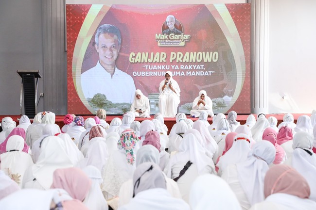 Ribuan emak-emak dan ustazah menggelar zikir dan doa bersama untuk Gubernur Jawa Tengah Ganjar Pranowo agar menjadi Presiden Indonesia periode 2024-2029. Kegiatan terebut diinisiasi oleh relawan Mak Ganjar yang berasal dari DKI Jakarta, Bogor, Depok, Tangerang dan Bekasi (Jabodetabek).