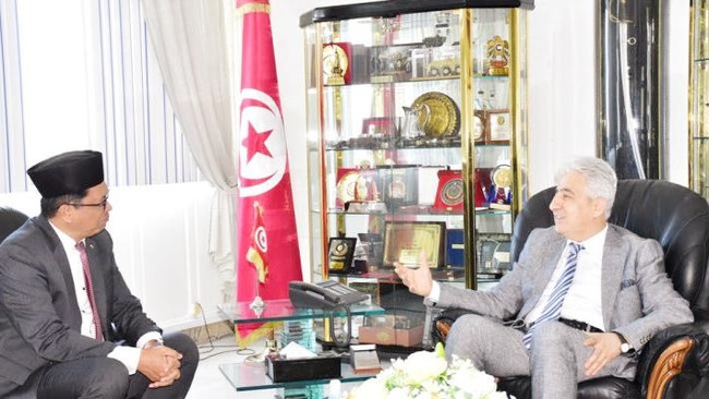 Duta Besar RI untuk Tunisia, Zuhairi Misrawi bertemu dengan Menteri Pertahanan (Menhan) Tunisia, Emad Memmisy. Keduanya membahas finalisasi kerjasama pertahanan antara Indonesia-Tunisia.